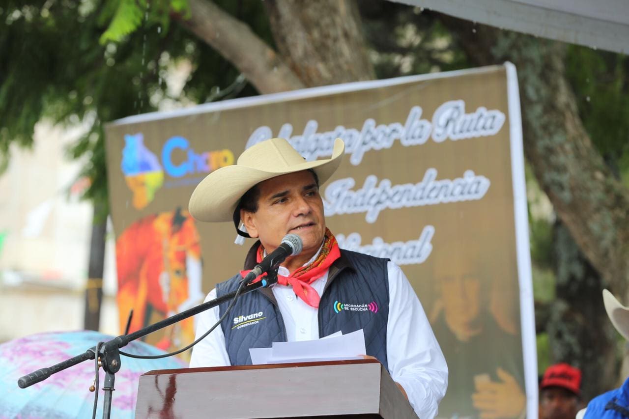 Indaparapeo, Michoacán a 20 de octubre de 2019.- Con el recorrido de tres de los 10 municipios que conforman la tradicional Cabalgata Ruta de la Independencia en Michoacán, el Gobernador Silvano Aureoles Conejo, hizo un llamado a recuperar los valores del Generalísimo Morelos, como un ejemplo de fortaleza en medio de la adversidad.