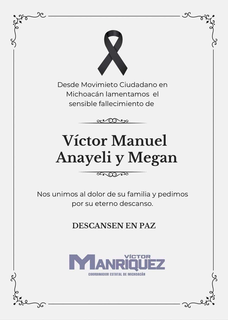 El coordinador estatal de Movimiento Ciudadano en Michoacán, Víctor Manríquez González, solicitó a las autoridades estatales el esclarecimiento del asesinato de tres integrantes de una familia en la entidad. Las víctimas fueron identificadas como Víctor Manuel N., Anayeli N. y una menor de edad, quienes se desempeñaban como intérpretes de Lengua de Señas Mexicana (LSM).