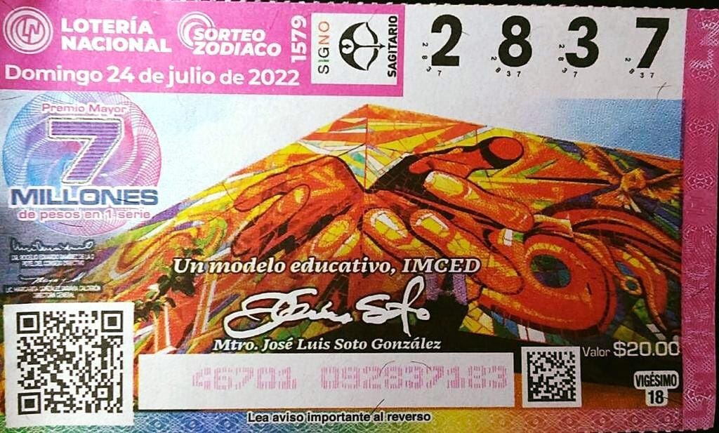 Morelia, Michoacán, a 19 de julio de 2022.- En el marco de la conmemoración de los 100 años del muralismo mexicano, la obra “Un modelo educativo, IMCED” es plasmado en los boletos de la Lotería Nacional.