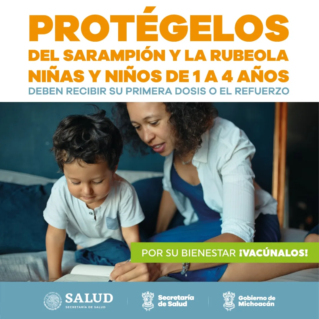 Morelia, Michoacán, a 18 de abril de 2021.- La Secretaría de Salud de Michoacán (SSM), informa que del 19 de abril al 25 de junio las y los niños de uno a cuatro años de edad recibirán una dosis adicional para protegerlos del sarampión y la rubeola.