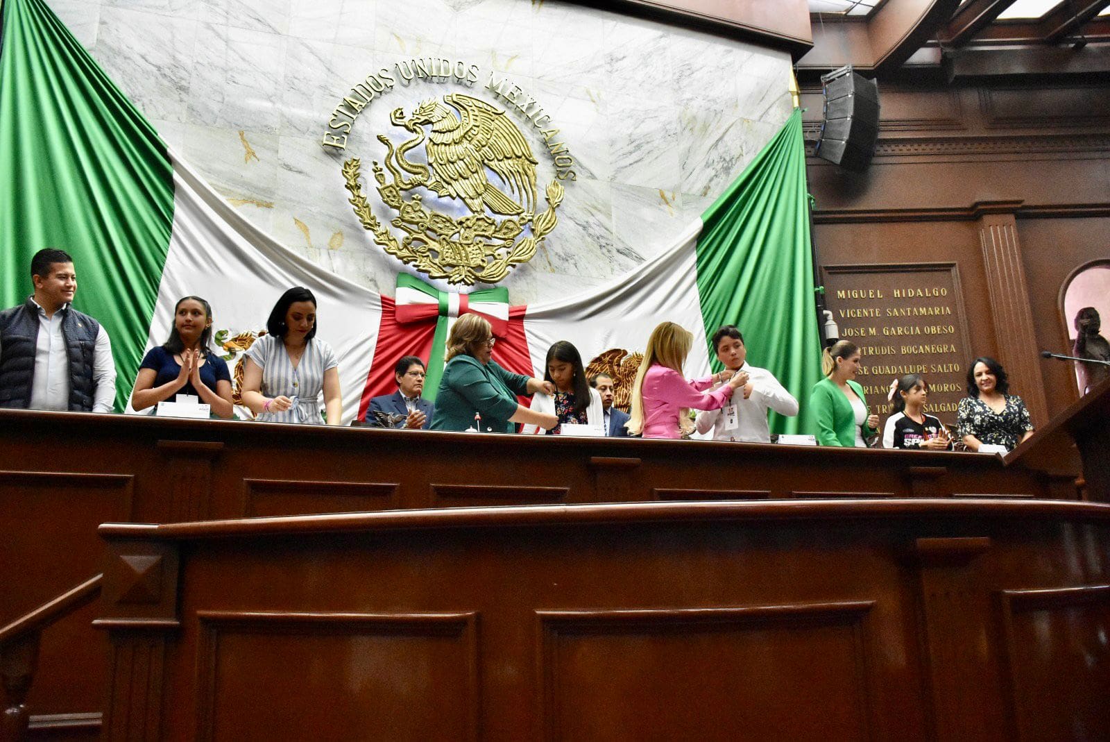 Durante la Sesión, en la que estuvieron presentes representantes de diversas dependencias de gobierno, la Presidenta de la Mesa Directiva, Julieta García Zepeda tomó protesta a las niñas y los niños que se les confirió el cargo de diputados parlamentarios infantiles y, les hizo entrega de un PIN que los reconocía como tales, a quienes les dijo, confiaba en su responsabilidad y en su aporte en beneficio del trabajo legislativo en la entidad.