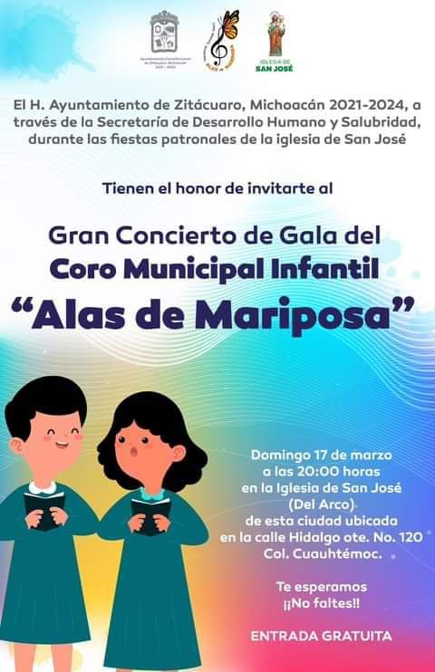 H. Ayuntamiento de Zitácuaro, Michoacán 2021-2024. La Secretaría de Desarrollo Humano y Salubridad se complace en invitar a la comunidad de Zitácuaro a las festividades de la iglesia de San José. En el marco de estas celebraciones, tenemos el honor de presentar:
