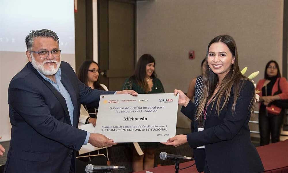 La certificación entregada por la Comisión Nacional para Prevenir y Erradicar la Violencia contra las Mujeres (CONAVIM), y por la Agencia de los Estados Unidos para el Desarrollo Internacional (USAID), legitima al CJIM de Michoacán como un órgano que brinda servicios integrales de ayuda garantizados, con altos estándares de calidad, a mujeres que han sufrido violencia.