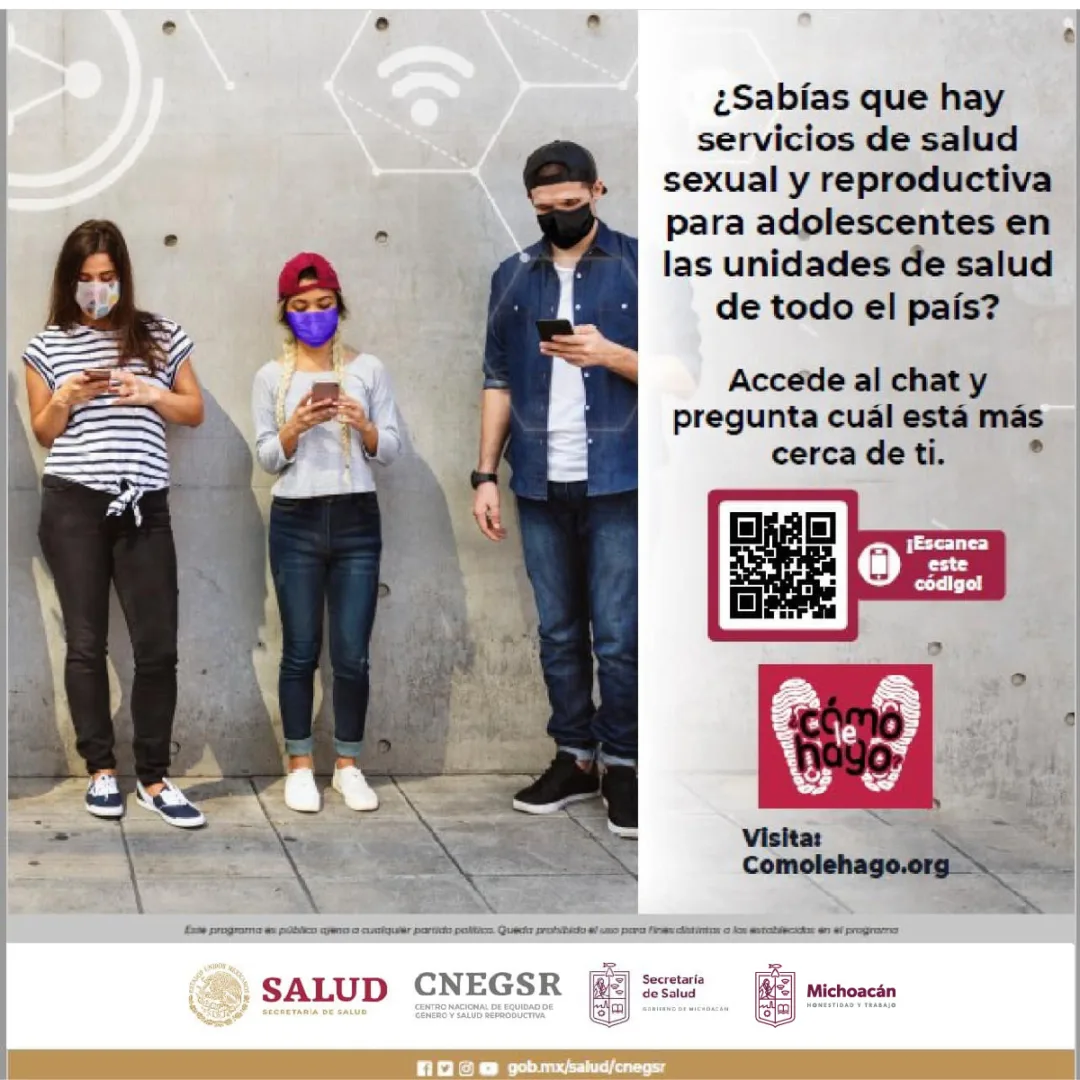 Para localizar el consultorio más cercano, la población puede consultar el enlace https://bit.ly/3HQL2a o visitar el chat ¿Cómo le hago?, donde especialistas en salud reproductiva brindan atención a jóvenes los 365 días del año, en el enlace https://comolehago.org/chat/comolehago/inicio-sesion.