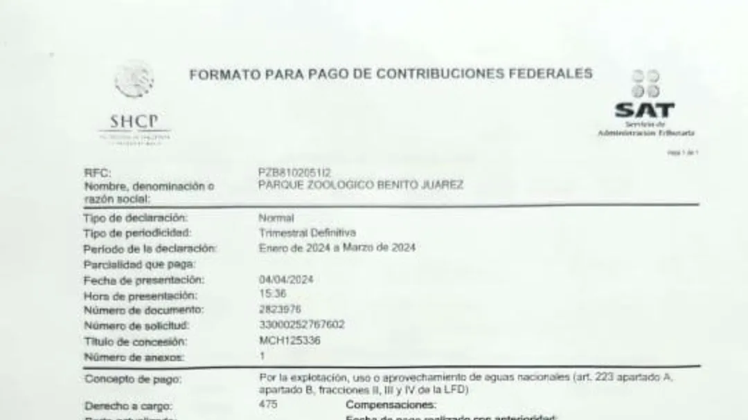 El encargado del recinto faunístico, explicó que, el pasado 4 de abril se realizó el último pago a la CNA, mediante el Servicio de Administración Tributario (SAT), con lo cual se demuestra que opera en la legalidad. Además, refirió que Comisión Federal de Electricidad (CFE) expidió una concesión para una subestación para el suministro de la energía eléctrica a dicho pozo, lo que no se podría hacer si operara en la ilegalidad.