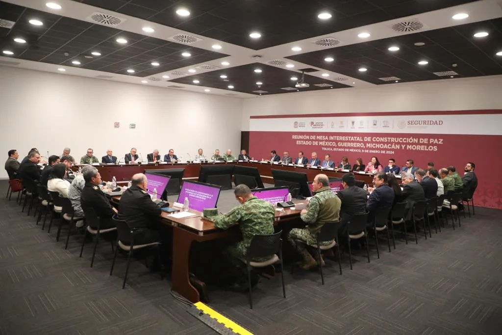 Toluca, Estado de México, a 9 de enero de 2024.- En el marco de las acciones interinstitucionales que se llevan a cabo en el país para garantizar la seguridad y acceso a la justicia, el titular de la Fiscalía General del Estado de Michoacán (FGE), Adrián López Solís asistió este día a la Mesa Interestatal de Construcción de Paz Estado de México, Michoacán, Guerrero y Morelos.