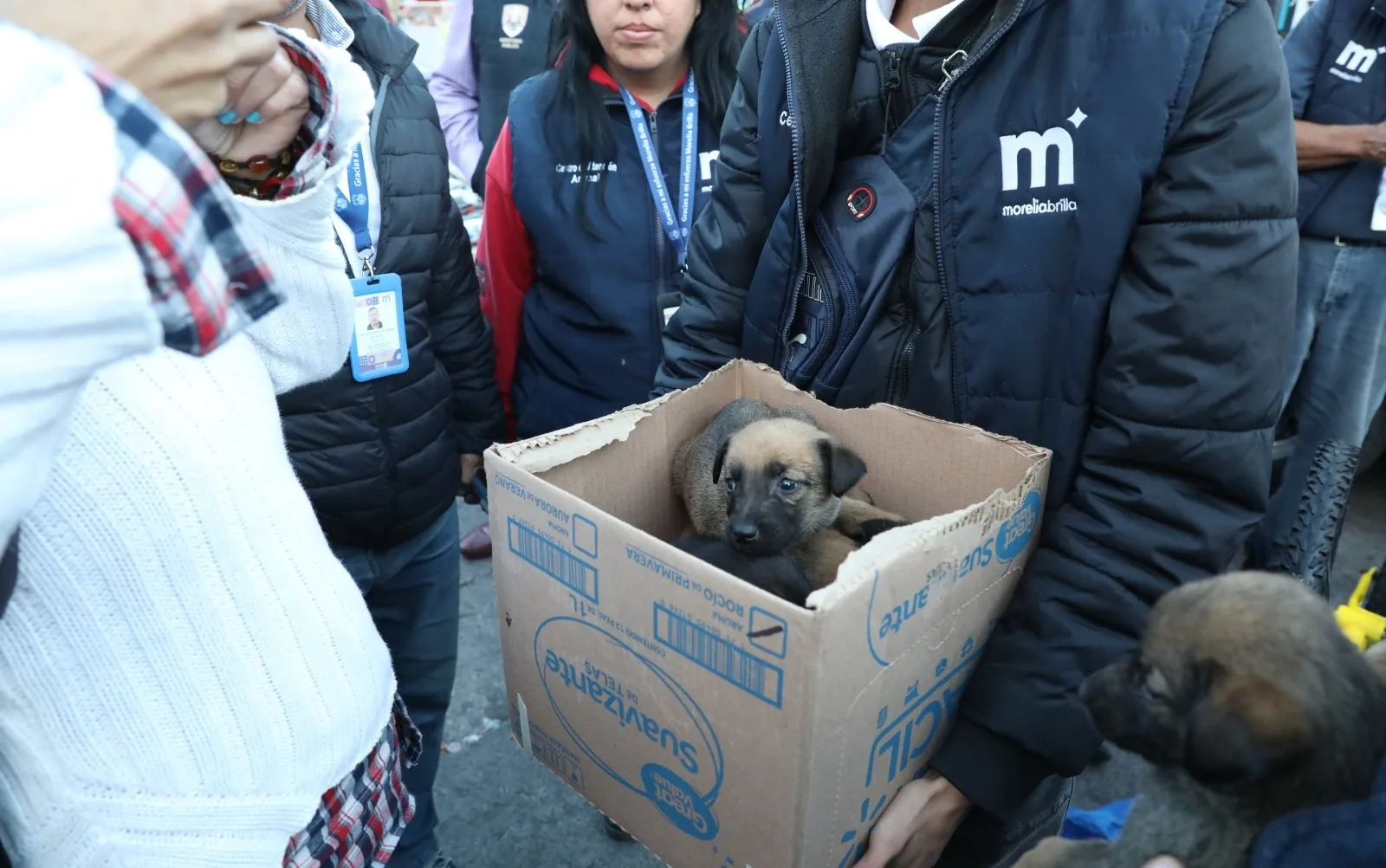Durante esta acción, personal del Ayuntamiento de Morelia resguardó seis ejemplares cachorros caninos y cuatro aves (pericos) que eran ofertados y comercializados en la vía pública