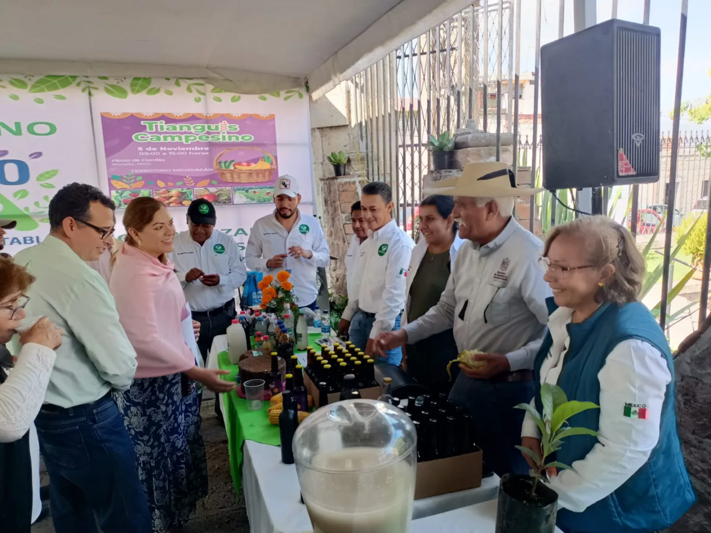 Morelia, Michoacán, 5 de noviembre de 2022.- Con la finalidad de fortalecer la actividad del campo mediante la comercialización y estableciendo cadenas de valor, así como la autonomía agroalimentaria, se llevó a cabo el Tianguis Campesino del programa Sembrando Vida; en el que la Secretaría de Agricultura y Desarrollo Rural (Sader) participó con un stand de exposición y venta de productos que se realizan dentro del programa Agrosano.