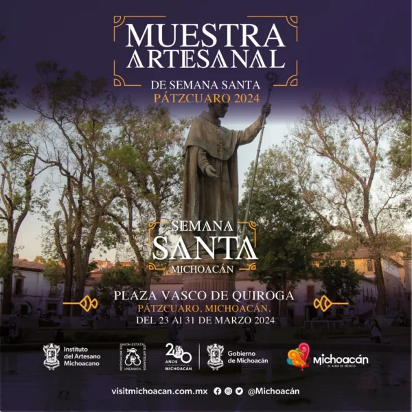 Morelia, Michoacán, 21 de marzo de 2024.- Los turistas nacionales y extranjeros que visiten Michoacán esta Semana Santa, podrán adquirir artesanía de todas las ramas en la plaza Don Vasco de Pátzcuaro del 22 al 31 de marzo, y del 21 de marzo al 7 de abril en el portal del Instituto del Artesano Michoacano (IAM).