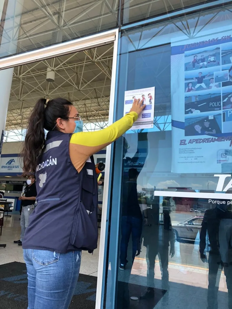 Morelia, Michoacán.- Personal de la Comisión Estatal de Protección contra Riesgos Sanitarios (Coepris) se sumó a las acciones de prevención por la contingencia del COVID-19, implementadas por el Gobierno del Estado, para lo cual se realizó una visita a la Terminal de Autobuses de Morelia, donde se hizo entrega de materiales para el cuidado de la salud.