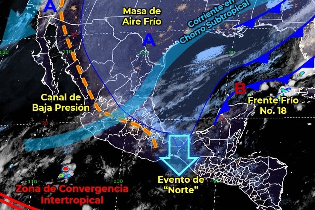 Morelia, Michoacán.- A consecuencia de la masa de aire que impulsa el Frente Frío número 18, persistirá cielo medio nublado a nublado durante el transcurso del día, con posibilidad de chubascos y ambiente frío en parte del estado de Michoacán.