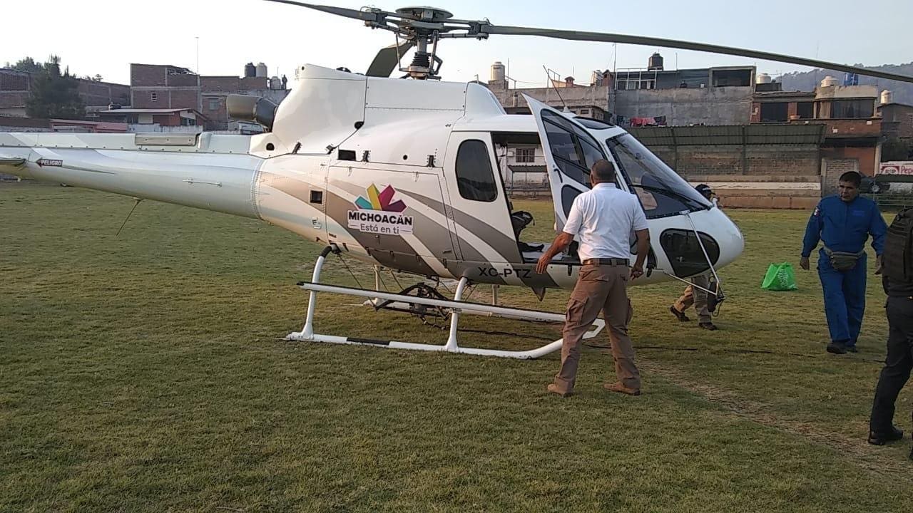 La otra aeronave, perteneciente a la Guardia Nacional, ayuda a combatir por aire el incendio en el Cerro Patamban.