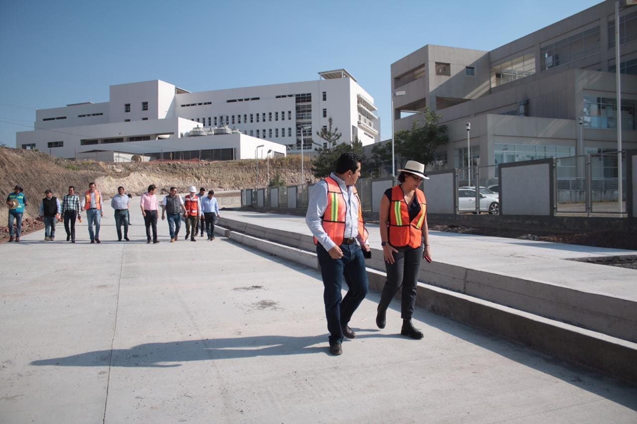 El Gobierno de Michoacán, que encabeza Silvano Aureoles Conejo, concluirá próximamente la construcción de las vialidades y estacionamientos de los nuevos hospitales General e Infantil, en la localidad de Atapaneo, municipio de Morelia.Así lo verificaron, Diana Carpio Ríos y José Hugo Raya Pizano, titulares de las Secretarías de Salud (SSM) y de Comunicaciones y Obras Públicas (SCOP), respectivamente, durante un recorrido de supervisión.