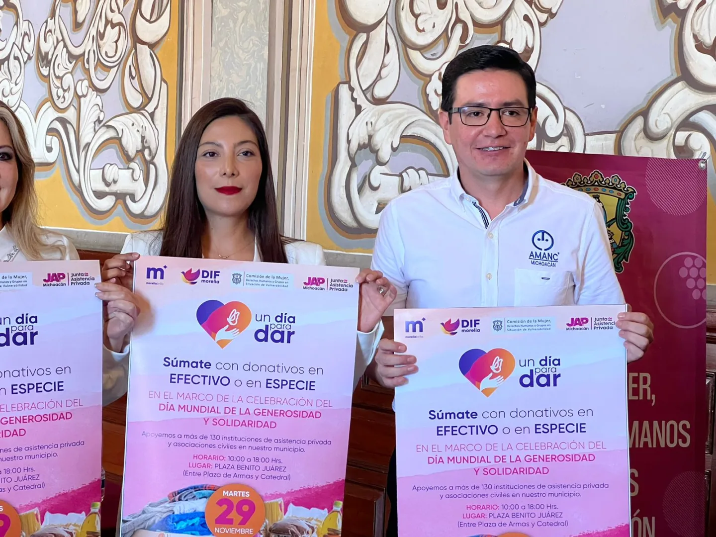 Morelia, Michoacán, 18 de noviembre del 2022.- Con la intención de generar acciones que fomenten la generosidad y fortalezcan la cultura de la donación, se presentó la iniciativa “Un día para dar”, con la cual las organizaciones registradas ante la Junta de Asistencia Privada del Estado de Michoacán (JAP) se verán beneficiadas el próximo 29 de noviembre.