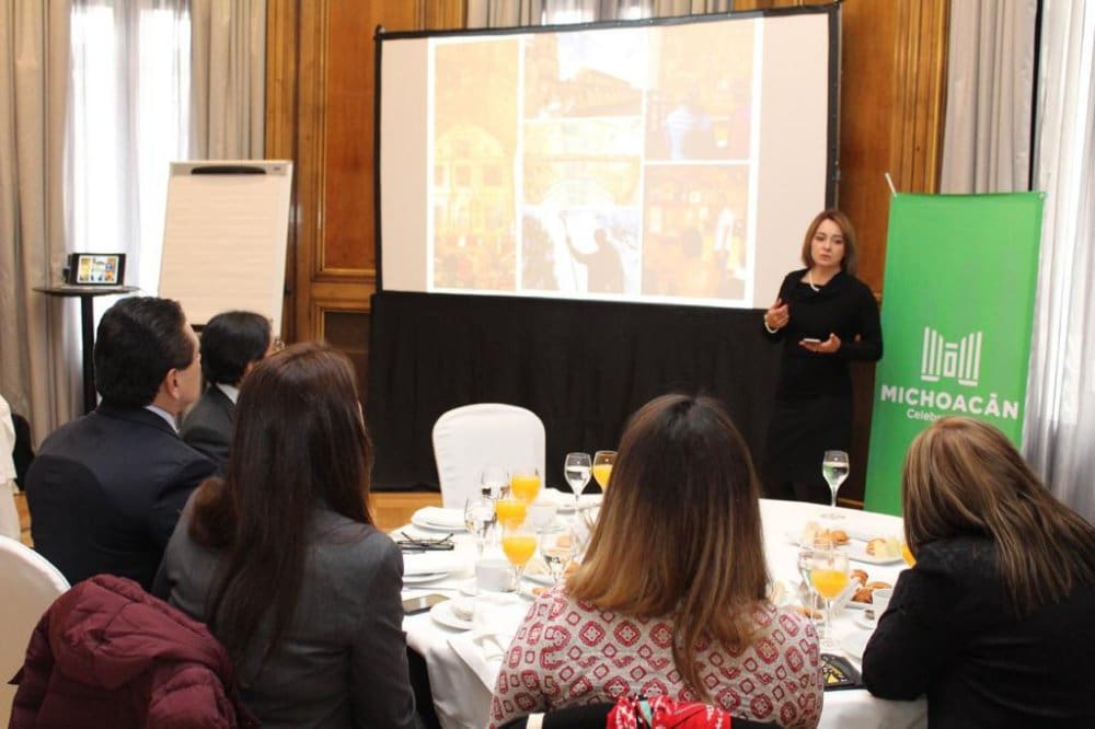 En el marco de su gira de trabajo en el país ibérico para asistir a la Feria Internacional de Turismo (Fitur) 2019, el mandatario estatal se reunió este martes con diversos representantes de empresas turísticas de España, con la finalidad de darles a conocer los atractivos con los que cuenta Michoacán, así como la nueva marca Celebra la Vida.