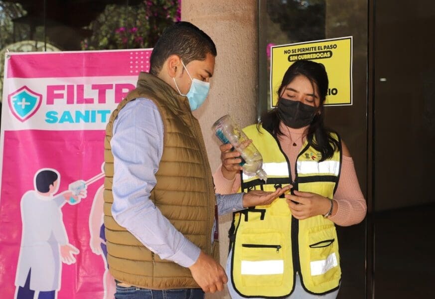 Promueve SSM uso de gel antibacterial a través de la instalación de filtros sanitarios