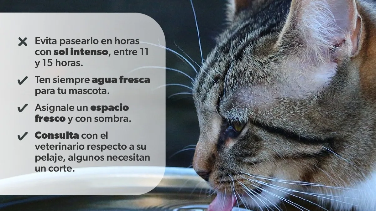 Es importante que los perros y gatos habiten en un lugar fresco con sombra o bajo un techo donde puedan resguardarse del sol y tengan agua para beber durante el día. Si están en un lugar cerrado, es recomendable dejar una ventana abierta para que circule el aire.