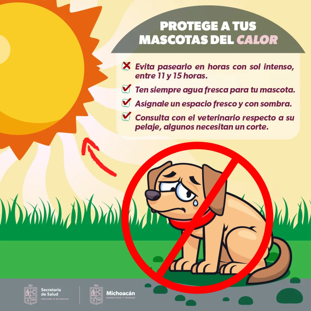 Morelia, Michoacán, 15 de junio de 2023.- Las mascotas también pueden presentar malestares por las altas temperaturas, es por ello que la Secretaría de Salud de Michoacán (SSM) invita a prevenir la deshidratación y el golpe de calor, con la detección temprana de los signos de alarma.