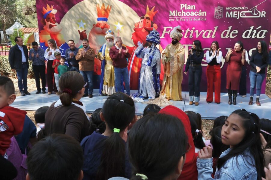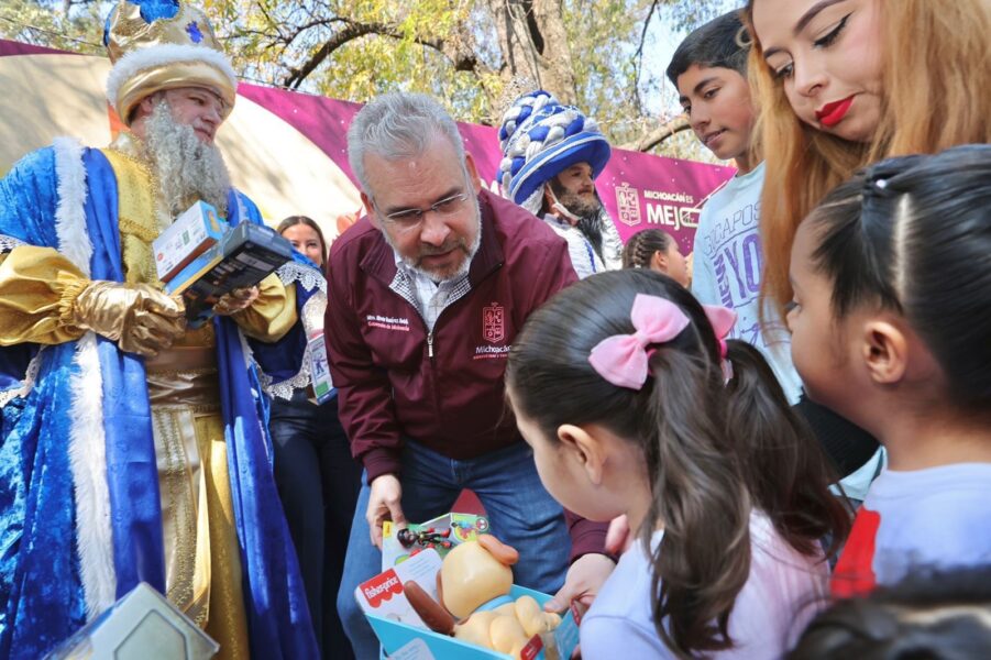 El gobernador de Michoacán, Alfredo Ramírez Bedolla, presidió las actividades conmemorativas del Día de Reyes en las instalaciones de la Villa Navideña, donde se realizó la entrega de juguetes y la repartición de la tradicional rosca a familias de la entidad.