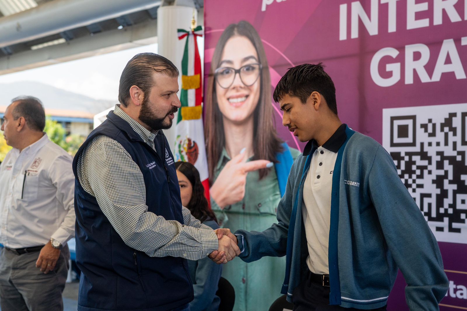Morelia, Michoacán, 6 de marzo de 2026. — El secretario de Gobierno de Michoacán, Raúl Zepeda, encabezó la presentación del programa Data Datos Gratis en el plantel Villas del Pedregal del Colegio de Bachilleres del Estado de Michoacán (Cobaem).