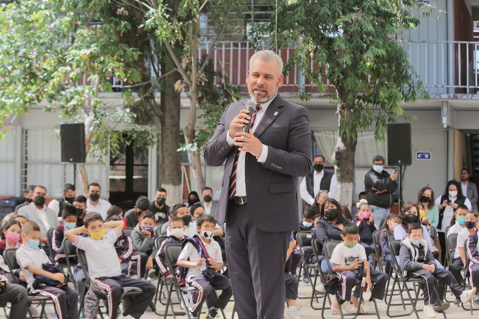 Morelia, Michoacán, 25 de abril del 2022.- A partir de hoy, 833 instituciones de nivel básico en la entidad reactivan el modelo de Escuelas de Tiempo Completo en beneficio de más de 74 mil alumnas y alumnos michoacanos, informó el gobernador Alfredo Ramírez Bedolla.