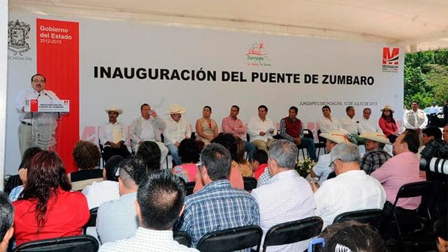 Además del puente Zúmbaro, el gobernador del estado, el secretario federal y el alcalde de Jungapeo, inauguraron la pavimentación de la vialidad que conecta al CBTA con la avenida principal del municipio y el rastro, además de la calle Fabiano Mora, en que el ayuntamiento destinó una partida de poco más de 4 millones y medio de pesos.