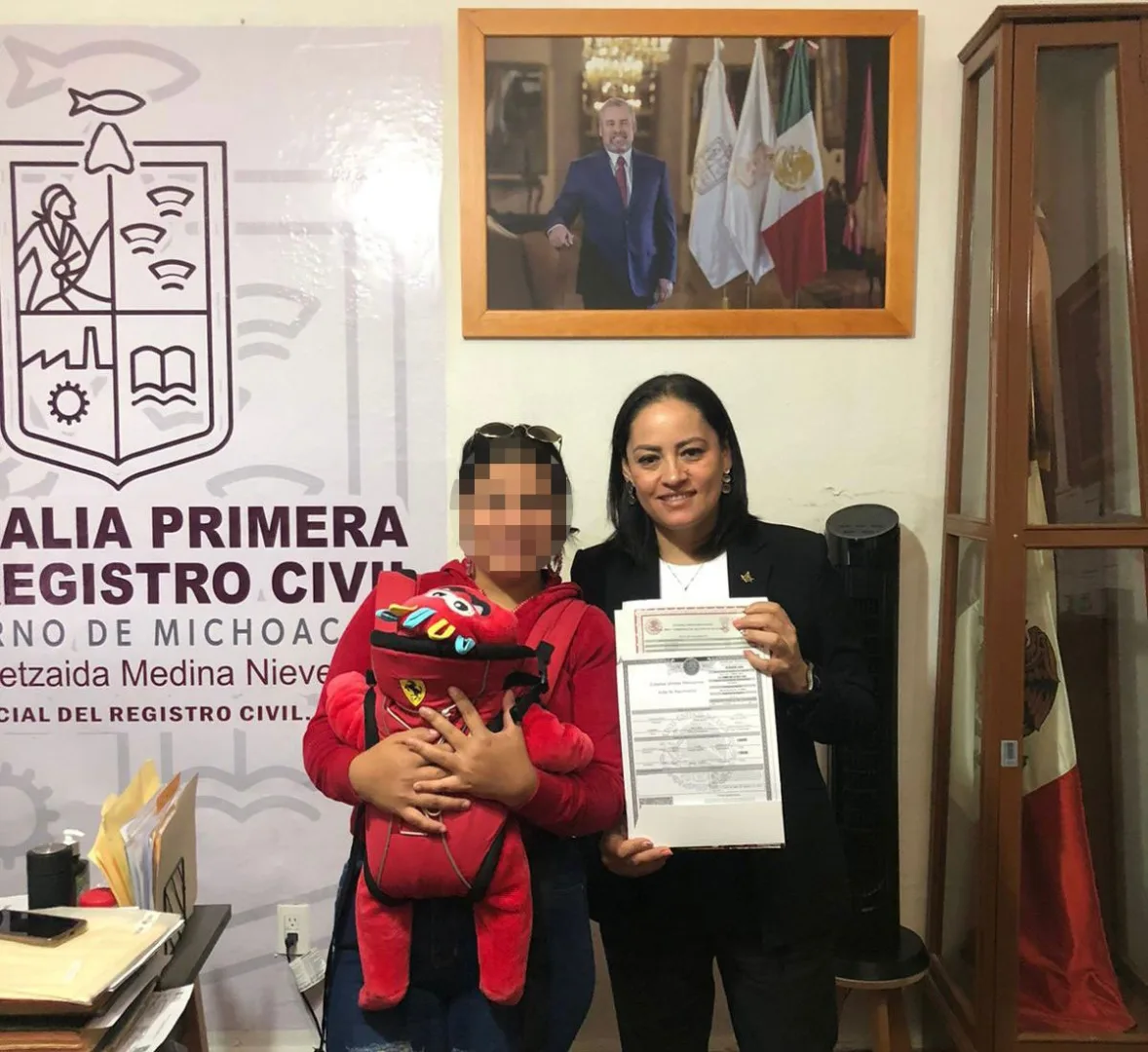 Por instrucciones del secretario de Gobierno, Carlos Torres Piña, en cumplimiento a un mandato judicial y a una recomendación de la Comisión Estatal de los Derechos Humanos, en la oficialía Número 1 del Registro Civil de Morelia se llevó a cabo el procedimiento para la inscripción del menor.
