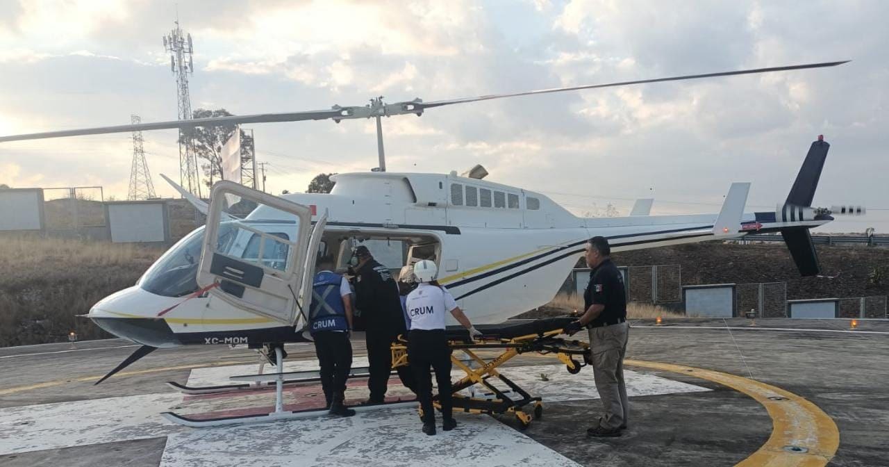 Se trata de un hombre de 27 años, quien, derivado de un hecho de tránsito en motocicleta, sufrió traumatismo craneoencefálico, por lo que autoridades del IMSS solicitaron apoyo del CRUM y de la Dirección de Servicios Aéreos del Gobierno del Estado para la regulación y traslado del paciente.