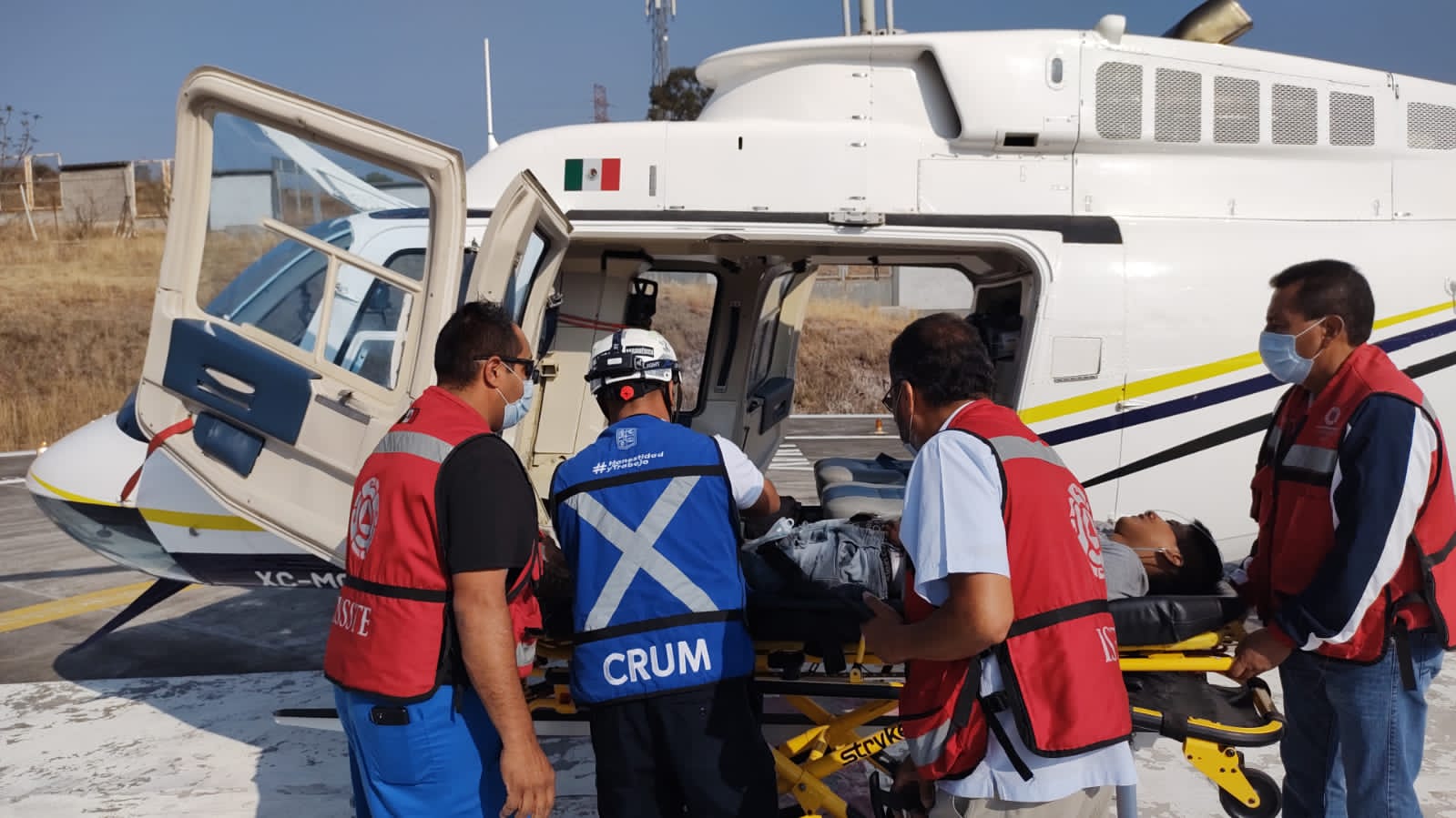 Se trata de un joven de 14 años, quien presentó una fractura de base de cráneo, derivado de un accidente de tránsito. Al encontrarse en condiciones delicadas, fue trasladado en el helicóptero de la Dirección de Servicios Aéreos del Gobierno del Estado al Hospital Infantil.