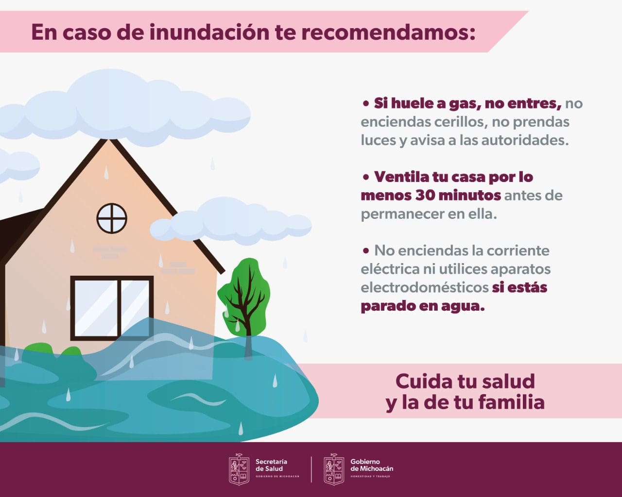 -Si tu casa continúa inundada, no entres y avisa a las autoridades para que te apoyen.