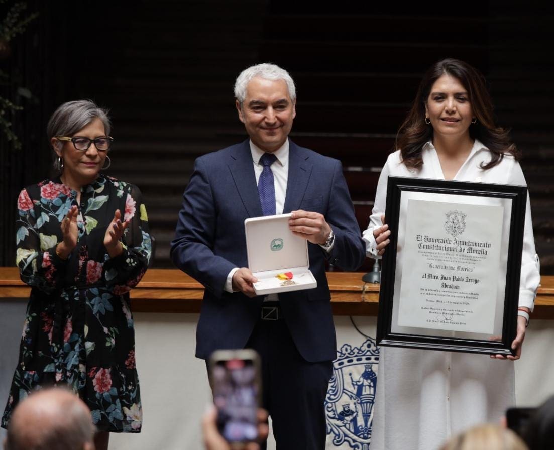 Morelia, Michoacán; 18 de mayo de 2024.- En Sesión Solemne de Cabildo, el Ayuntamiento de Morelia entregó la Presea Generalísimo Morelos a José Fabián Ruíz y a Juan Pablo Arroyo, dos morelianos que destacan por su aportación al acervo cultural y artístico del municipio y el estado.