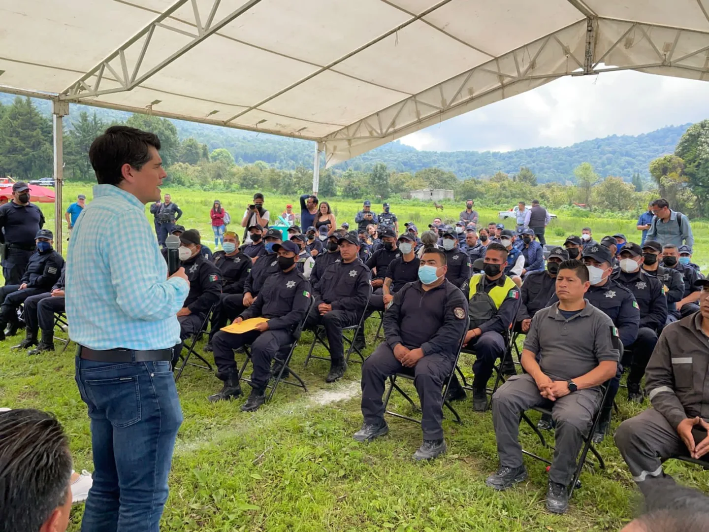 El presidente municipal Antonio Ixtláhuac, en compañía del Secretario de Seguridad Pública Municipal Maestro César García Rodríguez y la Síndico Lic. Mirna Merlos Ayllón, llevaron a cabo la entrega de escrituras a elementos de la corporación policíaca, asimismo les dieron posesión de los terrenos donde desde ahora ya podrán construir sus viviendas.