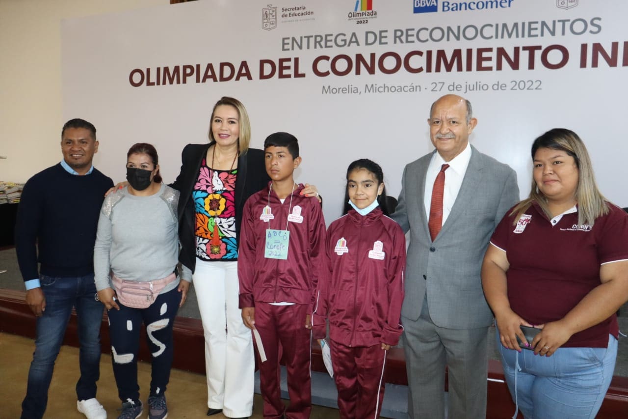 Morelia, Michoacán, 27 de julio del 2022.- Entre risas, lágrimas, abrazos y emotivos mensajes, este miércoles la Secretaría de Educación del Estado (SEE) reconoció a los 47 ganadores de la Olimpiada del Conocimiento Infantil 2022, en un desayuno que tuvo lugar al sur de la capital michoacana.