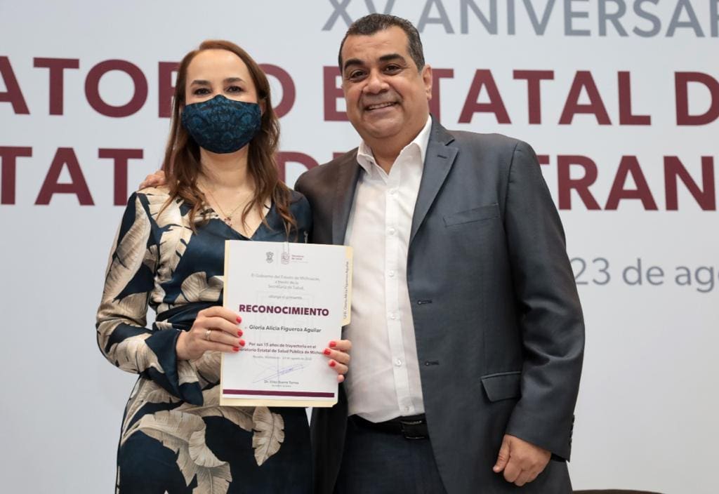 También fue reconocida la doctora María Eugenia Austria Palacios por su importante participación en la fundación del Laboratorio Estatal de Salud Pública y del CETS en el 2007, durante su gestión como secretaría de Salud en Michoacán,