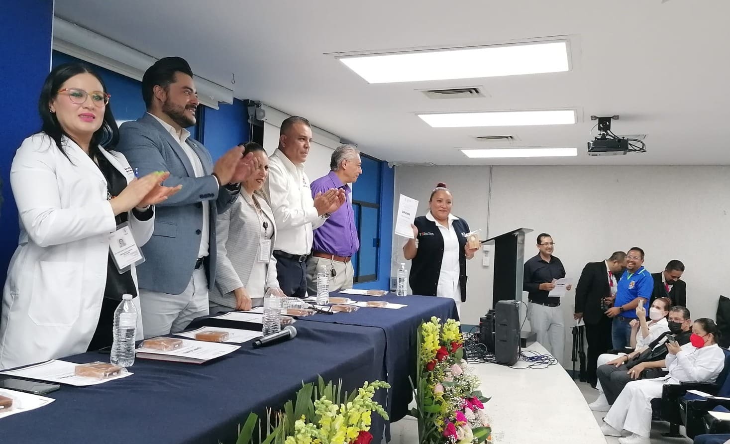 En representación del secretario de Salud Elías Ibarra Torres, el subdirector de Atención Médica de la SSM, Axayácatl Marín Correa, reconoció al personal por aportar su tiempo y talento al mejoramiento de los servicios de salud del estado, y refrendó el compromiso de la dependencia estatal en apoyar a los trabajadores en su desarrollo profesional.