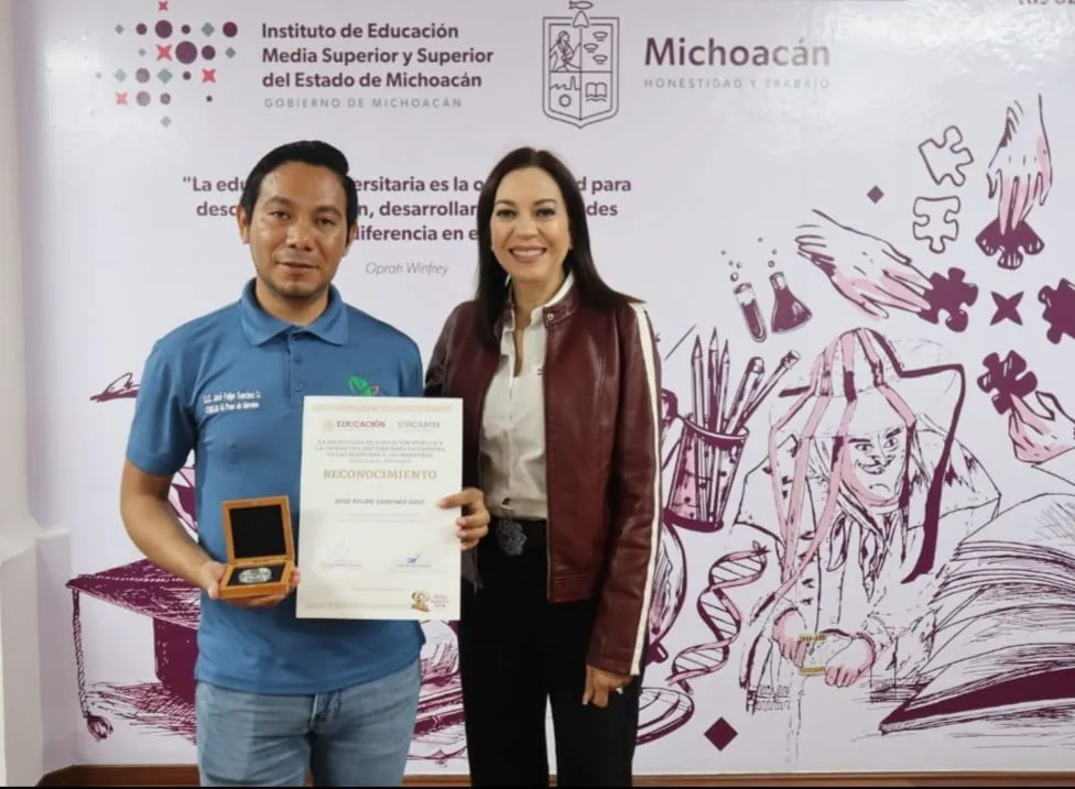 El maestro, quien labora en el Cecytem desde el año 2016, obtuvo el primer lugar en la lista de docentes galardonados de Michoacán, quien realiza su trabajo en el Centro de Educación Media Superior a Distancia (CEMSaD) Paso de Morelos, localidad ubicada en el municipio de Tacámbaro.