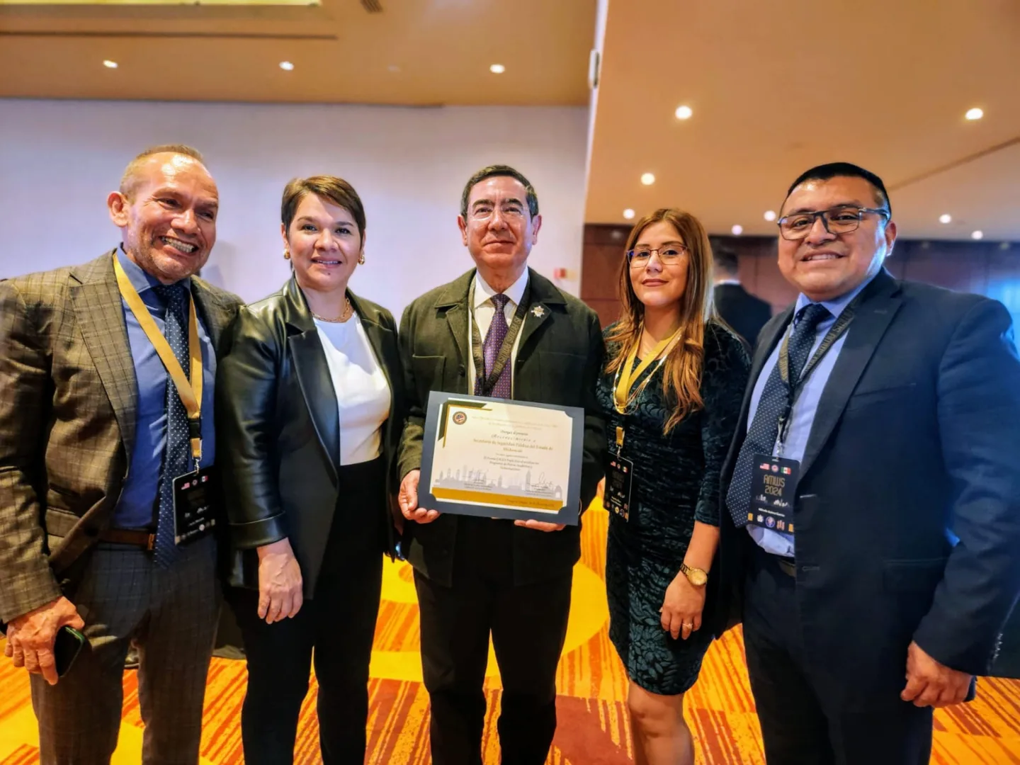Morelia, Michoacán, 2 de febrero de 2024.- El estado de Michoacán fue reconocido con el premio Triple Arco, por mantener acreditados sus programas de Policía, Académicas y de Comunicaciones, al contar con la certificación vigente, por la Comisión de Acreditación para Agencias de Cumplimiento de la Ley (CALEA por sus siglas en inglés).