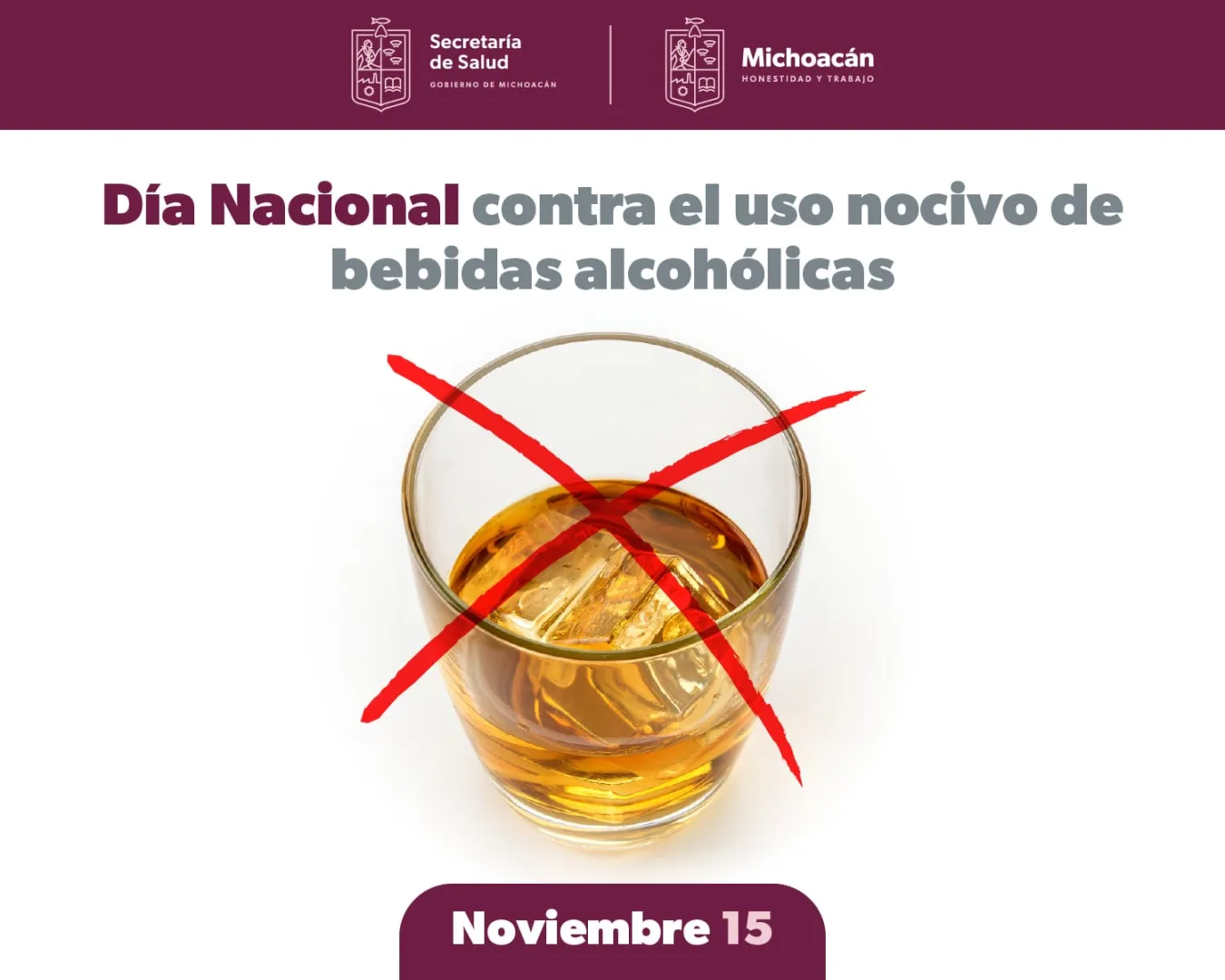 Morelia, Michoacán, 13 de noviembre del 2022.- En el marco del Día Nacional contra el Uso Nocivo de Bebidas Alcohólicas, a celebrarse el 15 de noviembre de cada año, la Secretaría de Salud de Michoacán (SSM) llevará a cabo una serie de conferencias.