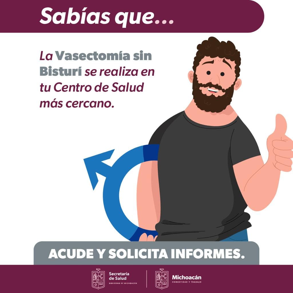 Morelia, Michoacán, 24 de junio de 2023.- La Secretaría de Salud de Michoacán (SSM) anunció que para lo que resta del mes de junio incrementará la oferta de servicios de vasectomía, método permanente de planificación familiar, entre parejas y hombres con paternidad satisfecha.