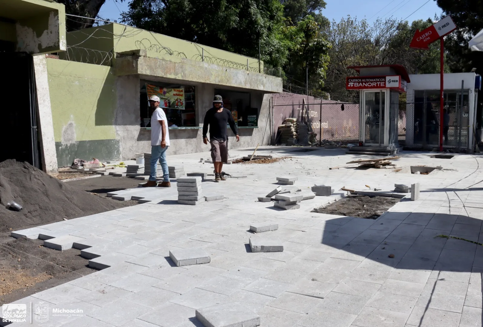 Precisó que ya fue retirado el adoquín de la explanada principal y en este momento se coloca un adoquín color gris de 30×30 para posteriormente instalar jardineras y alcorques, lo que permitirá mejorar la imagen ecológica y turística del recinto.