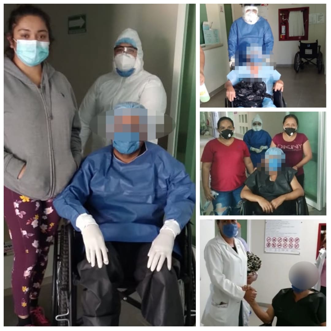 En esta lista se encuentran cuatro hombres de 43, 63, 56 y 81 años, quienes a pesar de ser pacientes con diversas comorbilidades fueron dados de alta por mejoría entre aplausos y sonrisas por el equipo médico que los procuró durante sus 8 y 10 días de estancia hospitalaria.