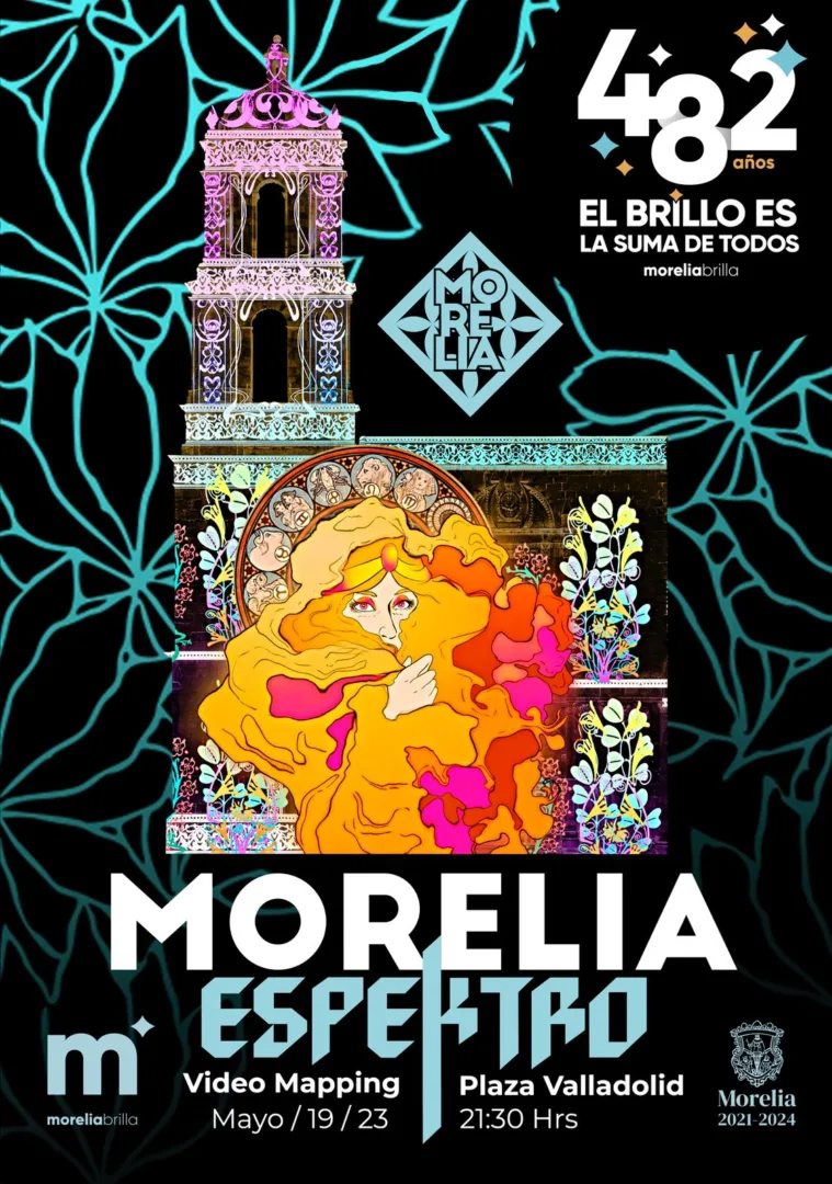 Morelia, Michoacán; 19 de mayo de 2023.- En el marco del Aniversario 482 de la ciudad de Morelia, la Secretaría de Turismo informa que el video mapping regresa con una nueva temporada llena de historia, tradición y con un toque moderno y futurista titulada “Morelia Espektro.