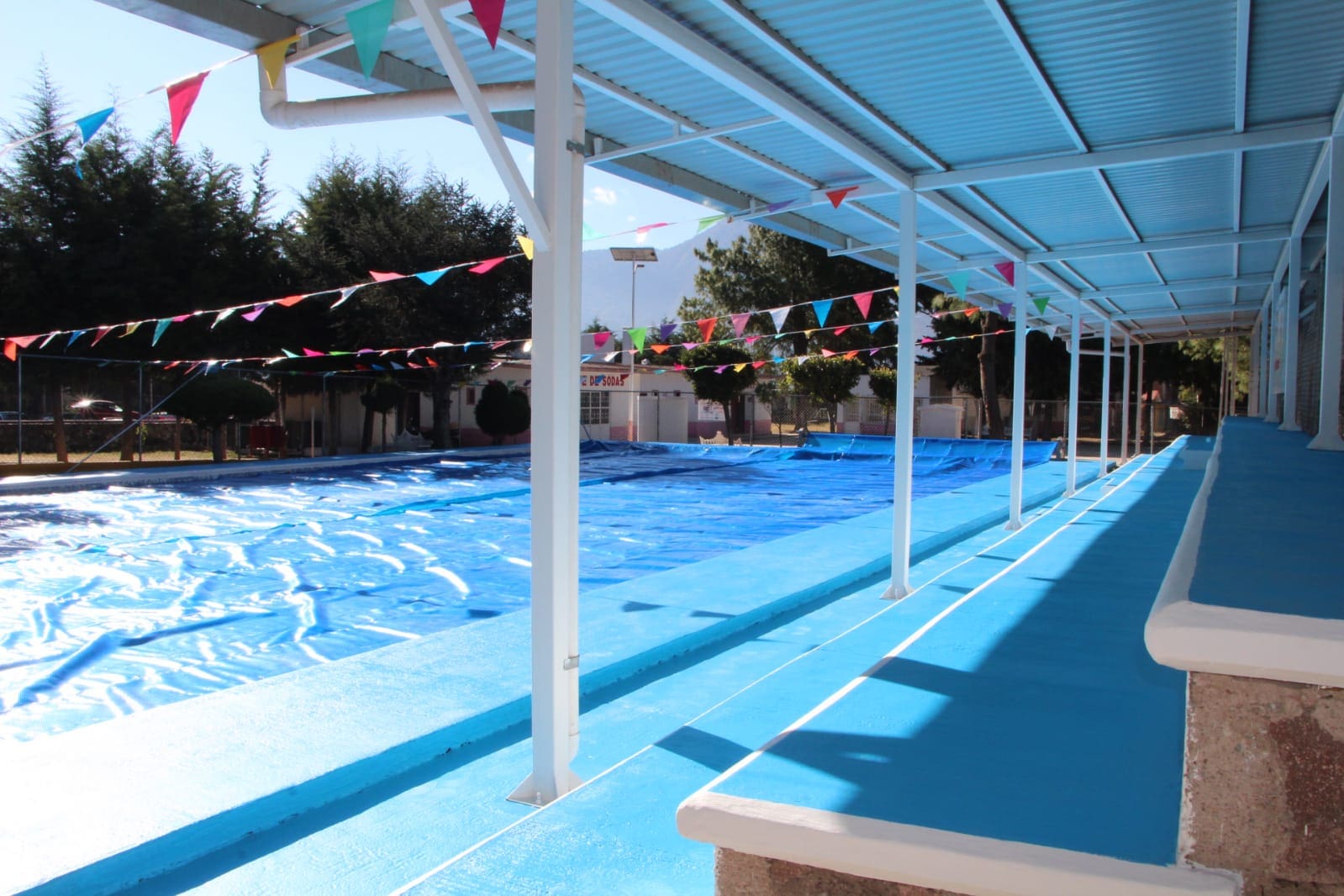 Zitácuaro, Mich., 2 de febrero del 2022.- El alcalde Toño Ixtláhuac inauguró la rehabilitación de la alberca semiolímpica de la Unidad Deportiva de Pueblo Nuevo, trabajo que consta de la instalación de una bomba de calor que brindará mejores condiciones climáticas a los usuarios, pintura, infraestructura y su nueva cubierta para que se mantenga más cálida.