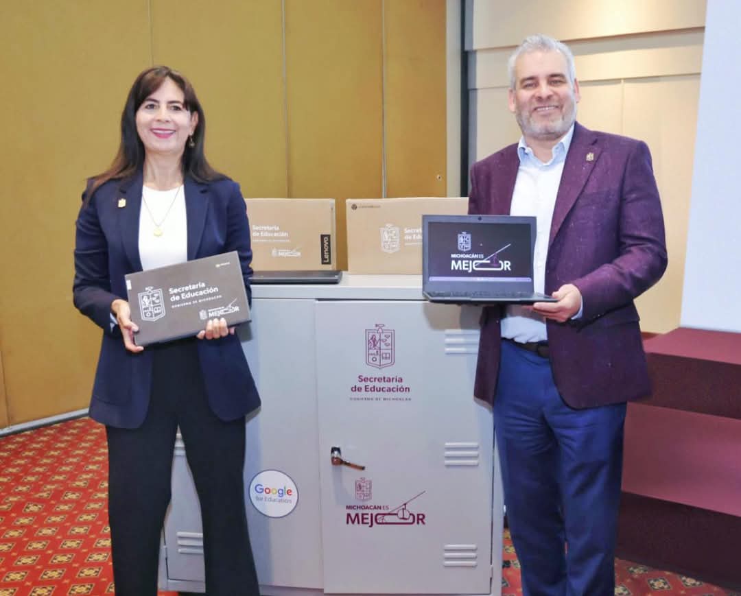 Morelia, Michoacán, 26 de diciembre de 2024.- Durante este 2024, la Secretaría de Educación del Estado (SEE) dio pasos importantes para la renovación tecnológica en las escuelas de Michoacán, como fue la alianza con Google for education y el seguimiento de la renovación de Telesecundarias, ambas acciones en beneficio de más de 115 mil estudiantes.