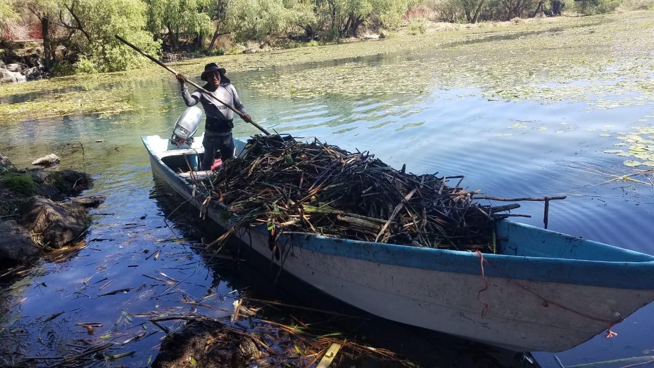 Retiran maleza acuática en la reserva ecológica de la Mintzita