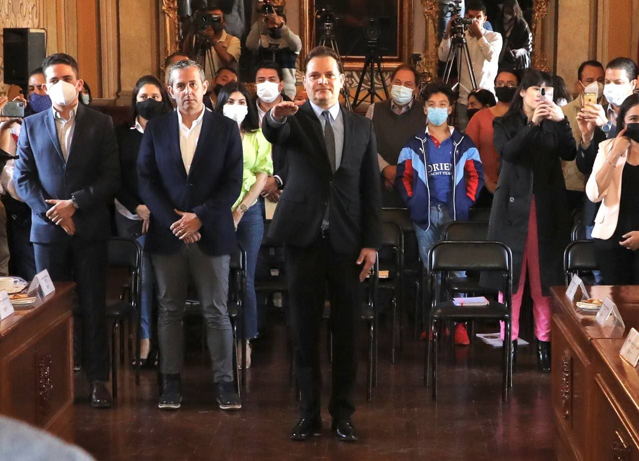 Morelia, Michoacán; 28 de febrero de 2022.- En sesión extraordinaria de cabildo y aprobado por unanimidad, la mañana de este lunes el presidente municipal, Alfonso Martínez Alcázar realizó la toma de protesta del nuevo tesorero municipal, Héctor Gómez Trujillo.