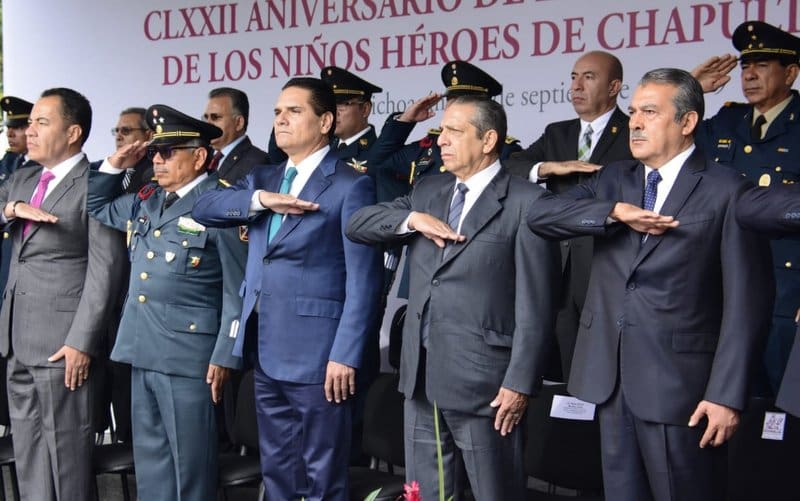 Acompañado por el General de Brigada Diplomado de Estado Mayor, Gerardo Mérida Sánchez, comandante de la XXI Zona Militar, autoridades del Poder Judicial, del Poder Legislativo, funcionarios estatales y municipales, recordó la Gesta Heroica donde los Niños Héroes defendieron con sus vidas el honor de su bandera y su colegio, e hicieron gala del amor sublime a la patria.