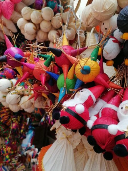 De acuerdo con la dependencia estatal, la oferta local incluye artículos de madera como juguetes tradicionales y mobiliario, así como piezas decorativas elaboradas con fibras vegetales, específicamente chuspata, entre las que destacan esferas y figuras ornamentales. Monroy García señaló que estos productos se encuentran disponibles tanto en el mercado de artesanías local como en talleres familiares abiertos al público.