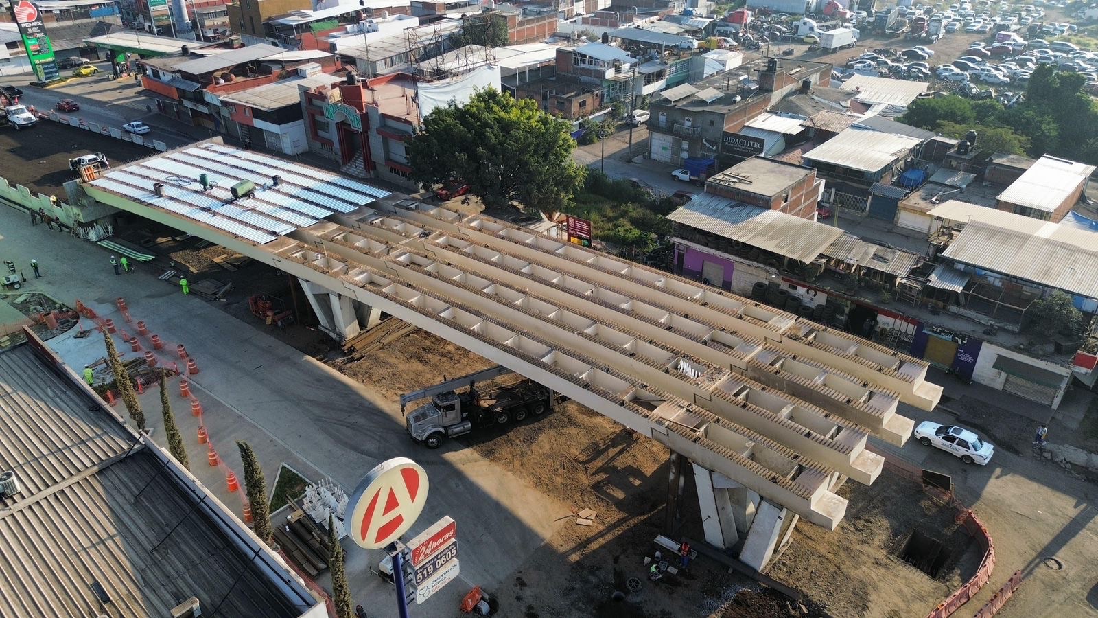 La dependencia detalló que las labores actuales incluyen la colocación de las últimas estructuras metálicas para la parte superior del puente y las rampas de acceso. La obra emplea a 150 trabajadores distribuidos en tres turnos.