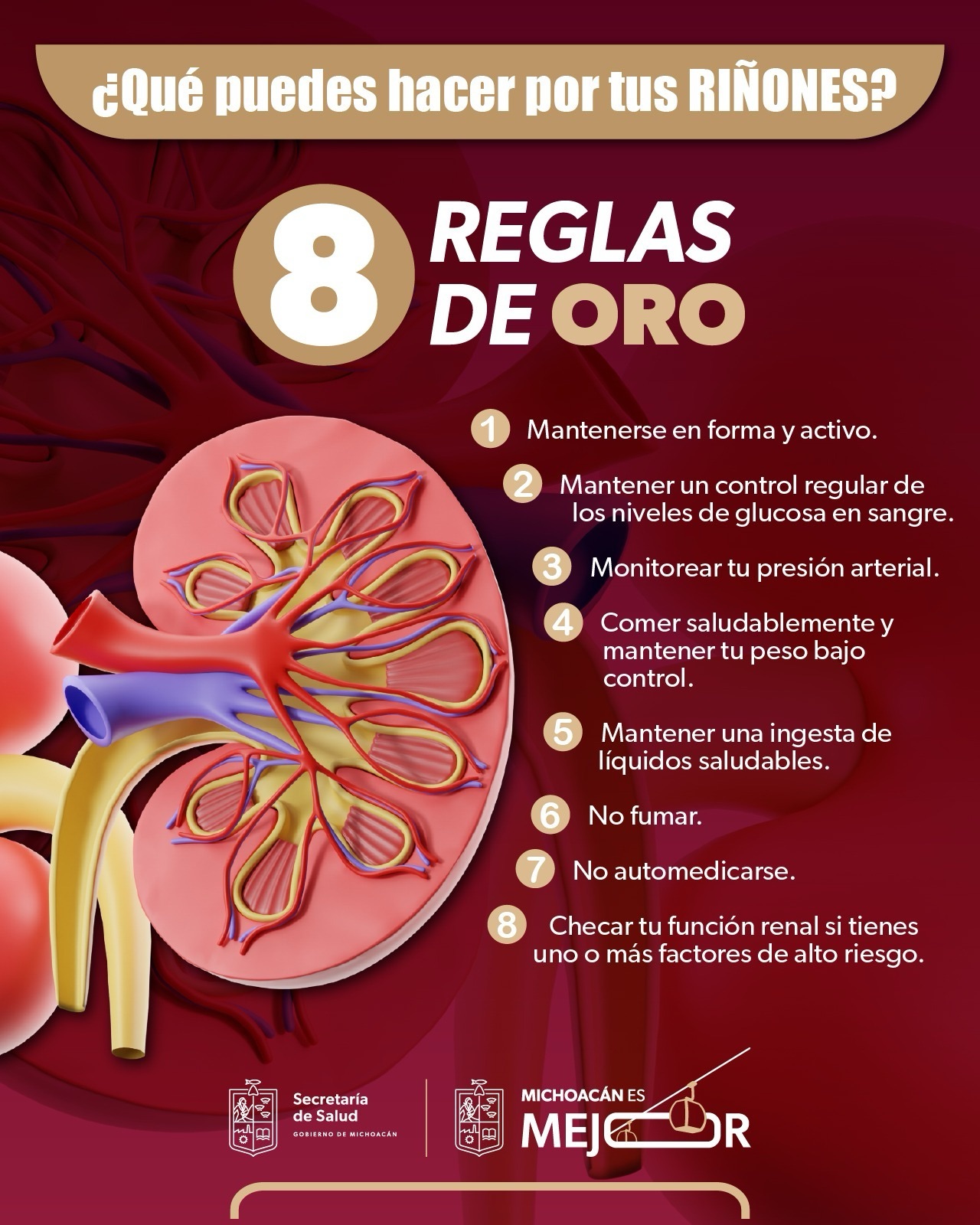 La Secretaría de Salud de Michoacán (SSM) informó que la diabetes mellitus, la hipertensión y la obesidad se mantienen como los factores principales en el desarrollo de la enfermedad renal crónica (ERC) entre la población. De acuerdo con la institución, la falta de control en estos padecimientos provoca un deterioro progresivo en la filtración sanguínea, lo cual puede derivar en la necesidad de procedimientos médicos como diálisis o trasplantes de órganos.